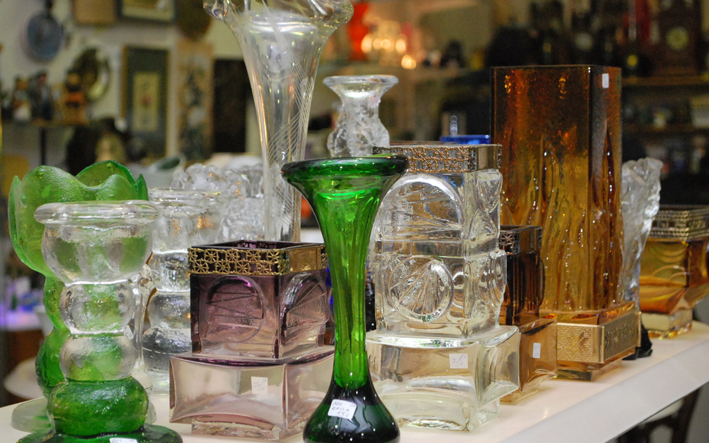 Antiikki- design ja vintage esineet, huonekalut, valaisimet, taidelasit, taulut, astiat, posliini, hopeaa, korut...